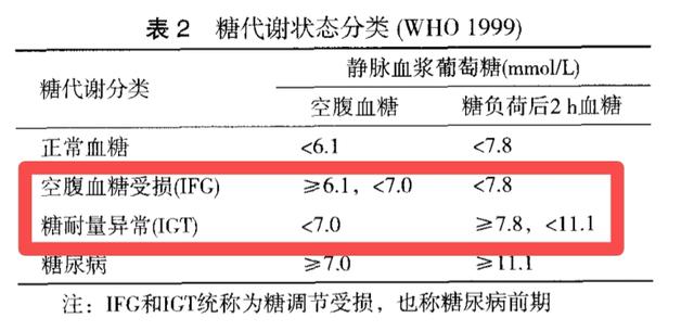 糖尿病前期诊断标准如上图