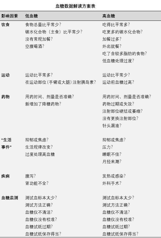 饮食、运动、药物、心情、疾病及测试方法等均可影响血糖结果,如果血糖数据偏高或偏低,不要着急,可以从以下影响因素分析原因,采取针对性措施,包括重新监测血糖、调整饮食结构、增加运动、增减药物剂量等。但如果血糖小于4.0mmol/L,则应先处理低血糖。