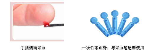 7.待干后用一次性采血针在手指侧面采血,不要重复使用采血针。