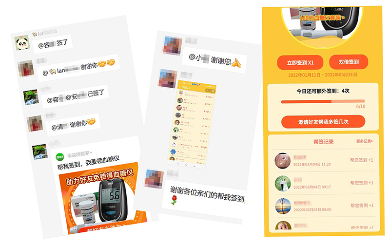 本次活动非常简单,只要签满365次就可以领取一套最新款血糖仪,看似很难完成,但可以让好友帮忙签,大家都来点点,很快就会完成,而且为了方便大家,我们还组建了互签群。