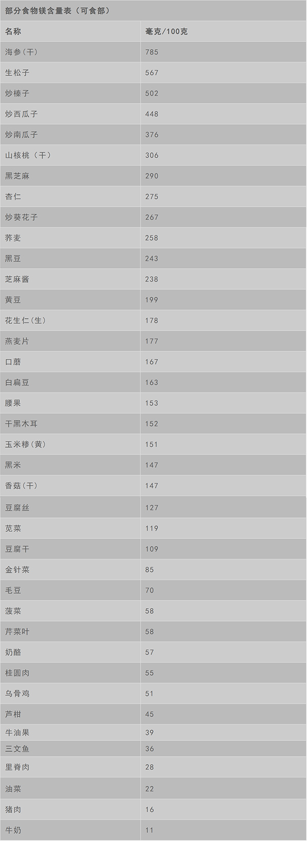 镁缺乏会造成钙代谢异常,机体摄入足量的镁有助于减少钙从骨骼中流失。钙与镁就像一对双胞胎,总是成双成对地出现,当钙与镁的比例为2∶1时最利于钙的吸收利用。