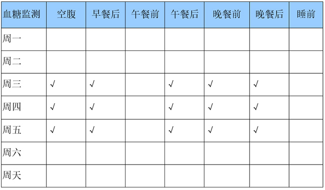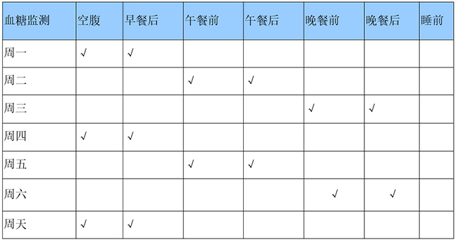 注:经过强化监测方案,得到了充分的血糖数值并采取相应的治疗措施之后,可以减少到交替监测方案