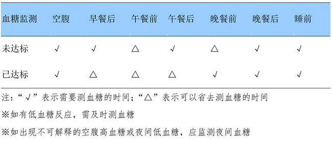 注:本方案适用于:①有低血糖症状患者;②远行或旅游;③感染等应激状态;④正在对对用药、饮食或运动方案进行调整;⑤糖化血红蛋白水平升高;⑥刚进入一个新的环境,如入学,开始新的工作或改变工作时间