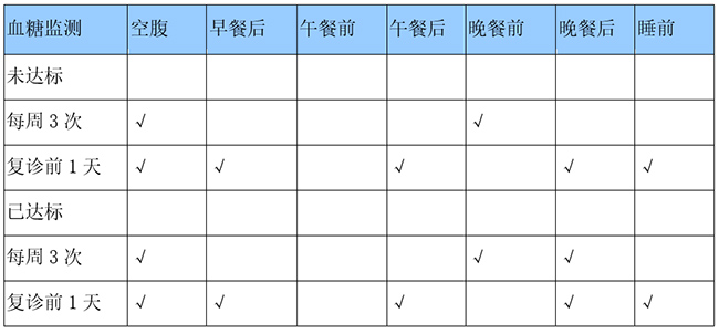 生活方式治疗患者建议每周测5-7点血糖;以指导营养和运动方案,并在血糖持续不达标是尽早开始药物治疗。